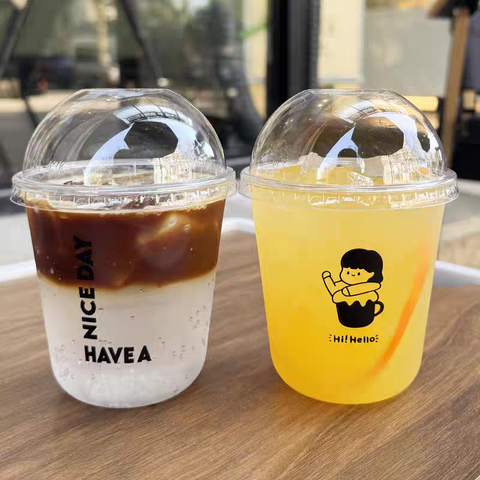 Taza PET de un solo uso de 16oz, taza de bebida fría con borde en U para té de burbujas, bebidas de frutas, taza verde ecológica de una sola pared, logotipo personalizado
